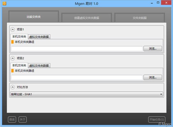 易对(Mgen)是一个免费的文件夹对比工具,易对早期预览版早在一年前就已经发布,现在放出1.0正式版。和早期预览版相比,正式版增加文件夹锐眼功能,全新的文件显示,界面优化和诸多问题修复。