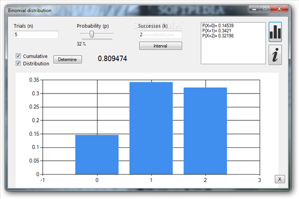二项式分布计算器(Binomial Distribution)你可以用它来计算二项式分布的概率。只需输入所需的信息,如尝试的概率和成功的次数和应用程序的数量会自动执行必要的演算,并生成相应的图形。