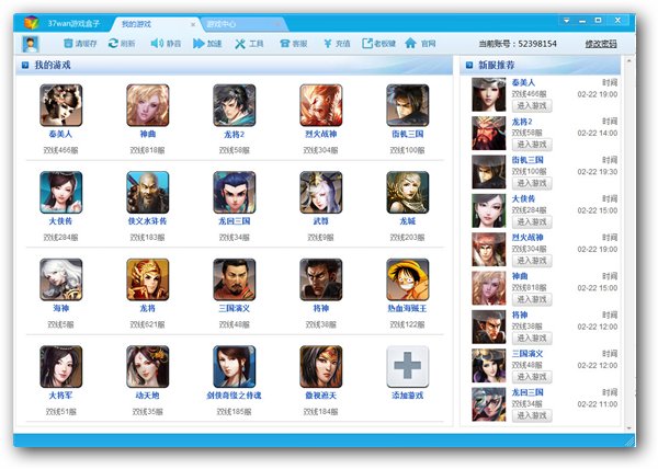 37wan游戏盒子,是37wan平台为广大网页游戏爱好者提供的一项永久免费的辅助软件。37wan游戏盒子,汇聚全球最热门的网页游戏,绿色安全,是广大游戏爱好者的贴心小工具。包括海量游戏绿色安全,一键安装简单省事,高速下载全程加速,游戏管家方便省心,游戏配置全能老板键,软件藏无踪智能检测!最新最酷游戏精选!所有功能,终身免费!