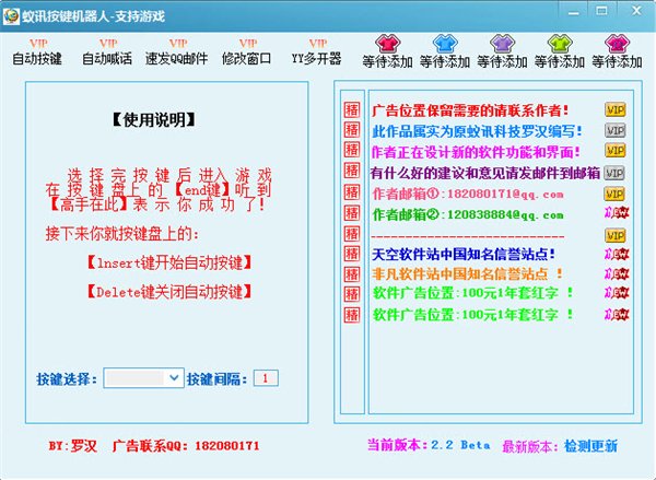 自动按键+自动喊话+快速发qq邮件+在线电影(正在测试阶段)一些功能正在添加中! 以上功能除了邮件之外其他功能支持任何游戏和软件!