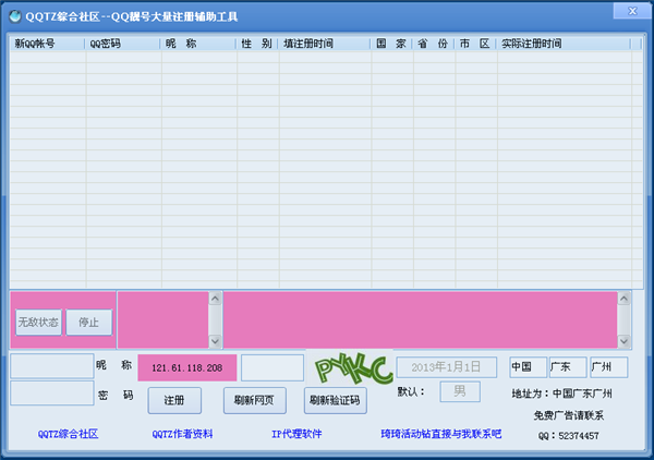 软件介绍QQ靓号大量注册辅助工具由QQTZ综合社区开发制作,可以帮助大家轻松注册到想要的QQ靓号。 使用方法: 软件打开后,会弹出三个QQTZ网站,网站打开完毕后,软件正式开启,之后大家可以无限注册了!