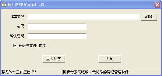 通用EXE加密码工具是一款可以给EXE加密码的软件,某些程序加密后可能无法正常运行,请做好原文件的备份。