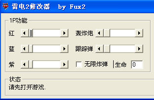 雷电2修改器可以修改两位玩家的功能如红、蓝、紫、生命条数、导弹、轰炸炮等等.
