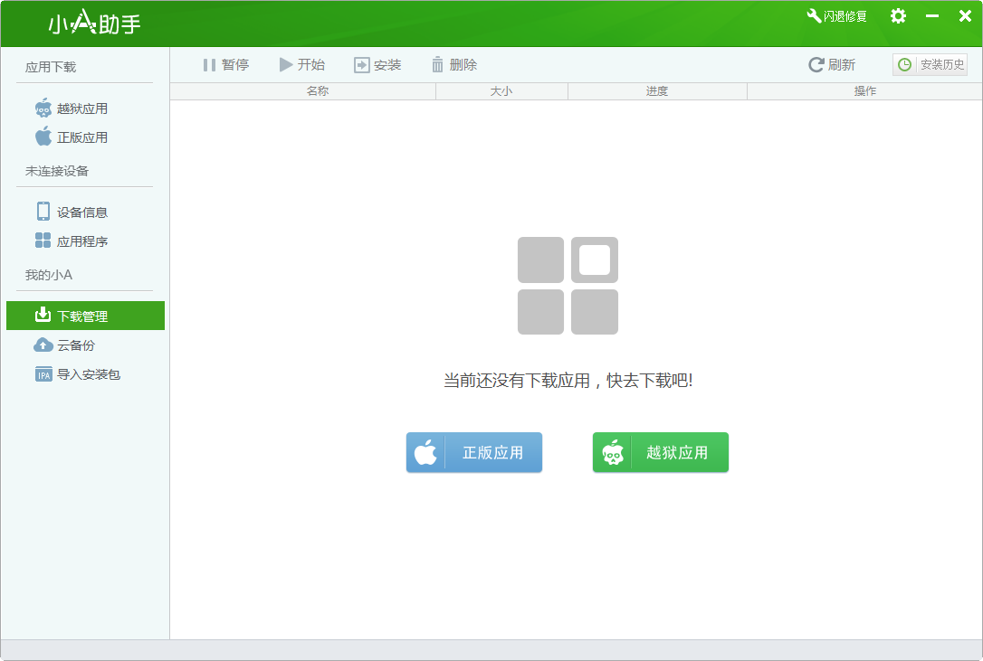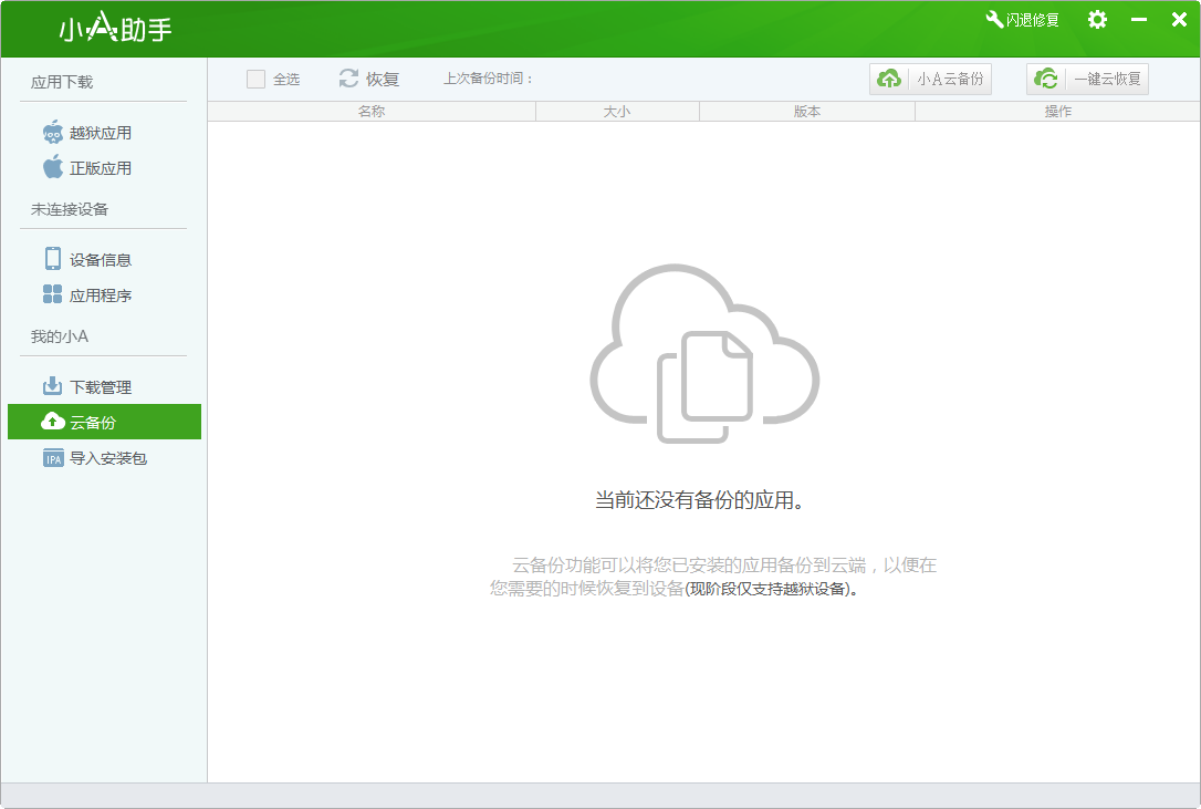 小A越狱助手iphone版是iphone手机上的一款越狱工具,配合小A越狱助手电脑版使用。小A越狱助手是云同步科技公司为用户精心打造的一项智能服务,已经完美支持一键越狱iOS6.0以上的固件。