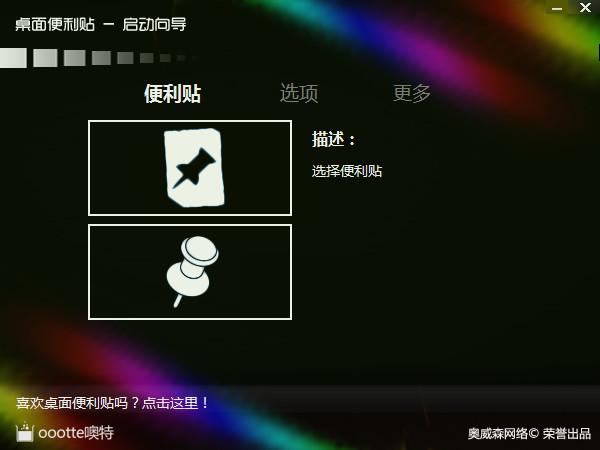 桌面便利贴是一款由奥威森网络开发的实用小工具。若您在某个网页或者文档中遇到什么内容需要临时复制一下,从开始菜单里面打开记事本是否太麻烦?赶快使用桌面便利贴吧!您可以随意地将一个便签放在桌面上,想粘就粘,随心所欲!定时提醒、更换皮肤、快速保存、开机启动等十余项强大功能等你体验!