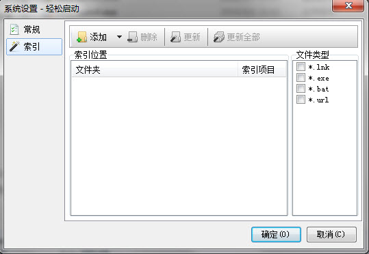 3、索引不会自动更新,更新索引需要执行“更新全部”或“更新”命令。这两个命令可以在通知区图标的右键菜单和系统设置的“索引”设置中找到。