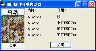 四川麻将4项修改器 绿色版 四川麻将4项修改器是同名游戏的辅助工具和作弊器