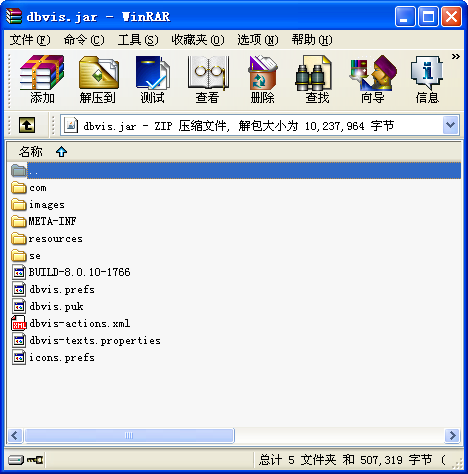 2.用WinRAR打开dbvis.jar打开C:\Program Files\DbVisualizer-8.0.10\lib\dbvis.jar,把里面的文件dbvis.puk用破解文件夹里的同名文件替换掉(用WinRAR打开dbvis.jar即可替换)