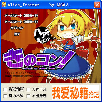 爱丽丝大战蘑菇是一款画面十分卡通可爱的休闲小游戏,有点像打地鼠的感觉,蘑菇不定时的冒出来,只要你的房间内蘑菇占有100%你就完了。 功能介绍 可以修改移动加速、天神下凡、魔力不减、不出蘑菇