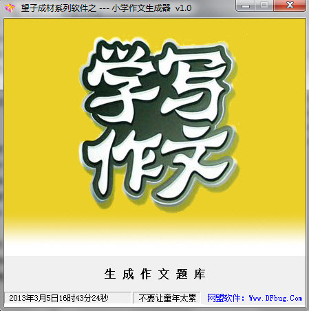 小学作文生成器软件,汇聚全国各大院校作文题库,自动生成作文题到WORD,可直接打印A4纸,孩子直接写作。小学作文题目生成器方便家长/老师给孩子留作业,天天留作业头都痛了,让软件全自动帮你吧,2013教育也要自动化。