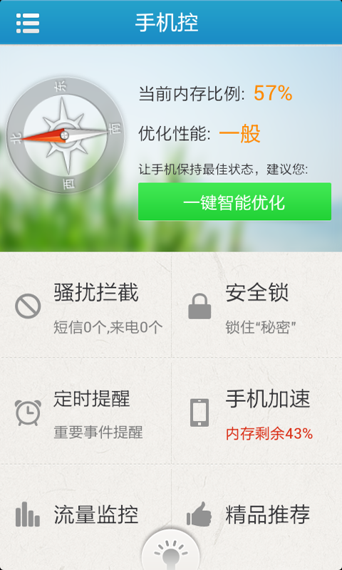 手机控手电筒加强版是一款集结众多软件优点于一身的手机客户端。还在为没有wifi,流量每月都超;骚扰电话、短信太多,惹人心烦;手机里面图片、短信不想被人偷看;事情太多,又容易记不住等事而郁闷吗?一款手机软件,全部搞定--贴心的智能手机管家。【更新日志】