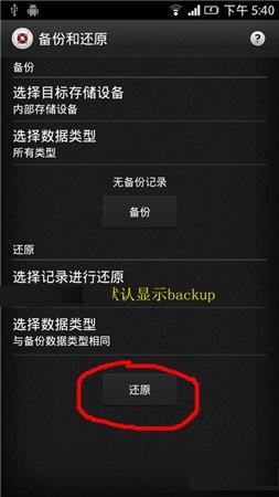 3.看到显示此截图后,请打开手机上的软件【还原与备份】,然后选择【还原】