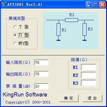 电阻衰减器计算工具 制定输入输出电阻,衰减量,衰减类型即可