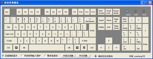 由远方制作的超级屏幕键盘是一款功能强大的屏幕软键盘软件,可以用鼠标来模拟完成普通键盘(104键)的任何操作。