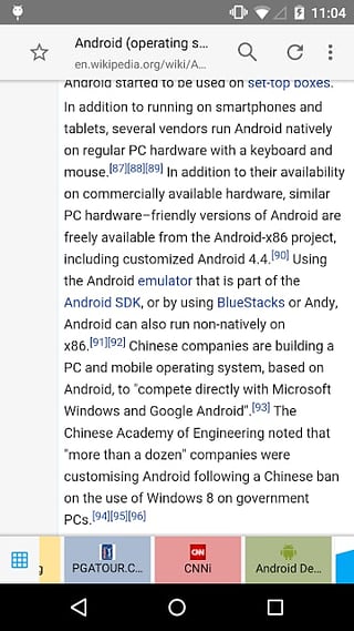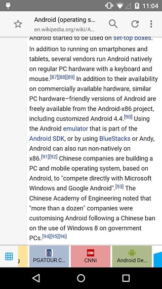 从“菜单>全屏”进行选择,则可进行大屏幕显示,方便阅览页面。利用 TouchPaging 切换标签页,或者划“S”的手势操作来显示检索栏等,在全屏状态下实现豪爽自在地浏览网页功能。