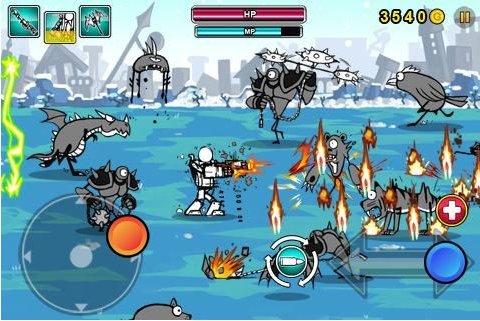这款《卡通战争-枪手CartoonWars-Gunner》延续了前个系列的风格,不过画面的表现力变得更为出色。战斗的方式也变为了在场景内消灭敌人的清版动作游戏。多样的武器和武器升级系统还有独特的武器技能,令游戏的战斗变得更为多彩。还有各种不同风格的敌人,让你目不暇接。游戏采用了虚拟按键的操作方式。整体的操作手感还是比较不错的,缺点是方向的虚拟按键没有采用手指追踪功能,所以可操作范围会比较小,需要适应。另外在每一关里下灭敌人都有金钱和魔力获得,金钱用于观后升级购买武器和强化自身,魔力用于在关卡内使用技能。