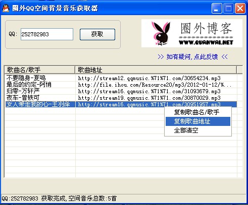 圈外QQ空间音乐获取器 1.0 免费版 圈外QQ空间音乐获取器