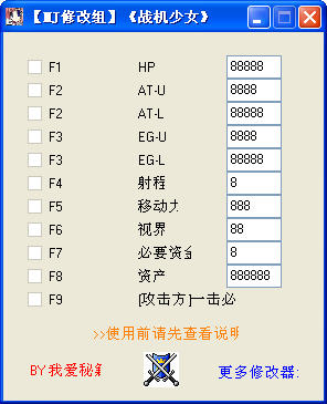 战机少女修改九项功能修改器可以修改各种兵器和加强武器性能,可以修改资产,练就一击必杀技能等功能