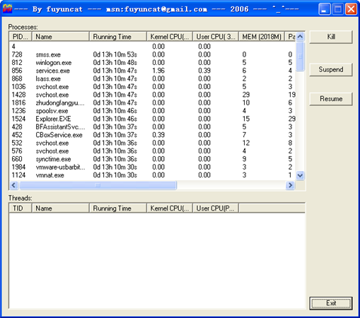 TopShow 还有俩功能,Kill(杀掉)进程以及 Suspend(暂停)/ Resume(恢复)进程。