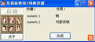 美眉麻将馆修改器是一款美眉麻将馆辅助。美眉麻将馆修改器目标只有一个,那就是赢光她的钱,挑战更高水平的美女咯!美眉麻将馆修改器 修改内容:1 给自己加钱 2 对方没钱