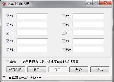 使用方法:先选择快捷键(f1到f10),设置对应的文本内容,点击启用按钮开启快捷键。不用的时候点击停用按钮取消快捷键。这些快捷键需要在文本编辑器中使用,比如记事本、word、文本框等等。