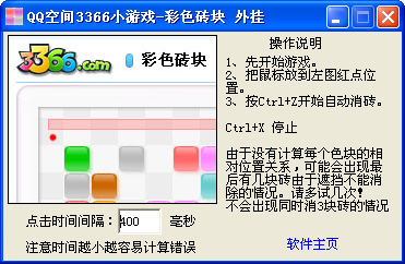 QQ空间3366小游戏彩色砖块辅助 1.0 免费版 3366小游戏彩色砖块是一款非常有意思的方块游戏,为了帮助玩家度过比较难的关卡,这里提供一款辅助工具给大家使用。