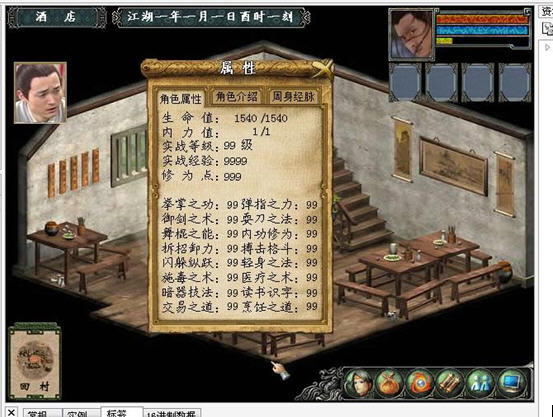 1、选择存档文件后按照原有存档基础上可修改人物所有属性、等级、经验值、江湖名望等。