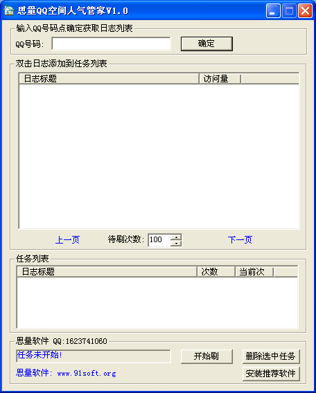 1、输入要提升空间人气的QQ号,然后点“确定”2、双击要刷人气的日志添加到任务列表