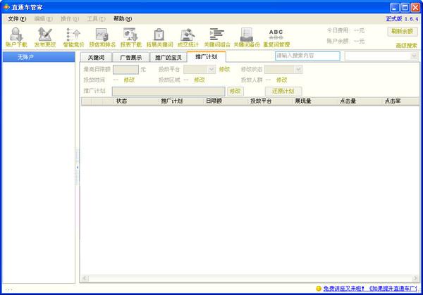 【概括介绍】淘宝直通车管家是一款淘宝直通车账户管理以及优化的应用程序。它提供非常多的功能,但基本使用过程却非常简单:下载直通车账户、编辑(可以离线编辑),然后上传最终定稿的推广方案