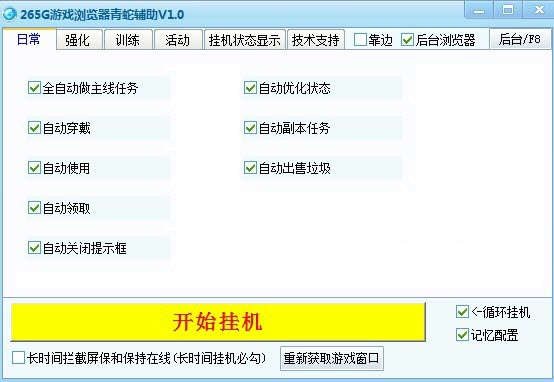 265G青蛇辅助完全模拟按键操作,不修改任何游戏数据和封包,并非外挂,各位用户可以永久免费使用。