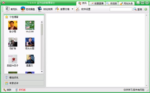 牛股密探 V1.2 绿色免费版 牛股密探股票软件,提供实时股评,博客股评,股市直播,股市实时分析.为您提供上证、深证、港股、美股、外盘指数等实时股票行情信息
