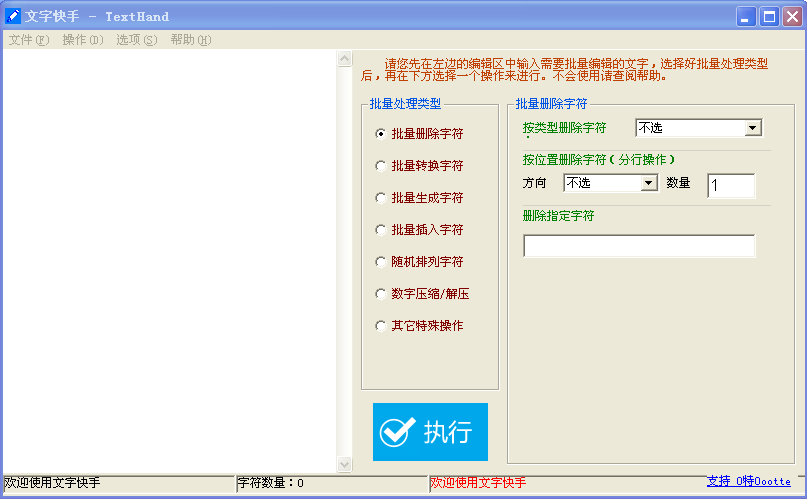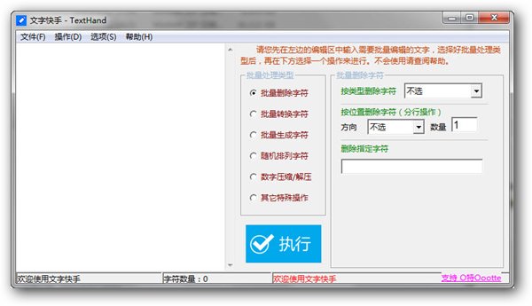 文字快手可对于大量文字进行批量编辑处理,含有如批量删除、批量转换、批量生成等非常实用的功能的文字批量处理软件。