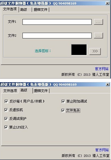 超级文件捆绑 可以任意捆绑所有格式的课执行文件,为文件 程序加上保护壳!