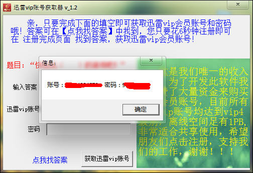迅雷vip会员账号获取器 说明