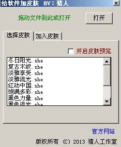 给软件加皮肤工具,这是一款给程序加上皮肤的软件皮肤添加工具,理论上大部分的软件都能加上皮肤。