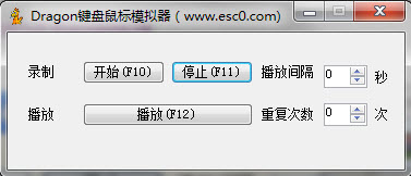 Dragon键盘鼠标模拟器 1.0官方免费版 Dragon键盘鼠标模拟器能够录制键盘鼠标操作,可以在不退出游戏界面的情况下,使用全局快捷键操作,并能按要求回放,对于重复的键盘鼠标操作,可以代替人的操作,操作方便,兼容win7、win8。