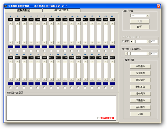 32路伺服电机控制器可以同时操控32个模拟舵机的控制器软件,可设置串口号和通信波特率;