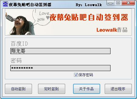 夜幕兔贴吧自动签到器是一款百度贴吧快捷签到工具,一键就签到所有贴吧,并支持定时签到,并且加入自动签到功能,欢迎下载体验。