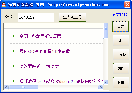 铅笔刀QQ辅助查看器可以查看指定QQ的空间,包括日志、相册、留言版、访客和分享内容,操作简单,使用便捷,欢迎下载体验。