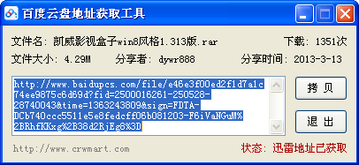 草蜢百度云盘地址获取工具 2.1 绿色版 草蜢百度云盘地址获取工具可以获取百度云盘文件的真实下载地址以便于迅雷等下载工具引用,是一款优秀的百度云盘地址转换工具,欢迎下载使用。