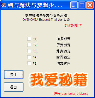 剑与魔法与梦想少女是一款以美女格斗为主题的动作游戏,游戏画面精美细腻,画中角色极具诱惑力,游戏内存不大,对电脑配置要求不高,是一款宅男游戏。本补丁可以修改血量、子弹、炸弹,时间等五项功能。