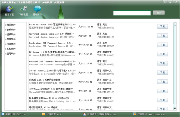 易编软件中心 1.0 绿色免费版 易编软件中心是一款软件下载管家工具,由易语言编写,如有误报,纯属预料,欢迎下载体验。