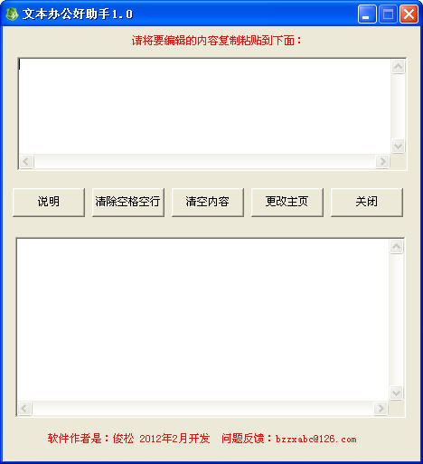 文本办公好助手(清除空格空行工具)的主要功能是去除复制网页文本中的空格与空行转换成纯文本,便于再次编辑。