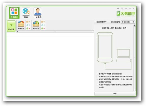 闪装助手 v2.1.7 绿色版 闪装助手又名掌星业务管理系统。是安卓手机、平板设备程序管理软件,实现了常用的程序一键安装!方便多台设备同时管理,发送歌曲、电影更轻松!是智能手机厂商、批发商出货必备利器,而且还能统计安装台数!