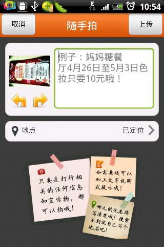 随手拍分享身边的优惠信息,获得积分,更可赢手机话费。