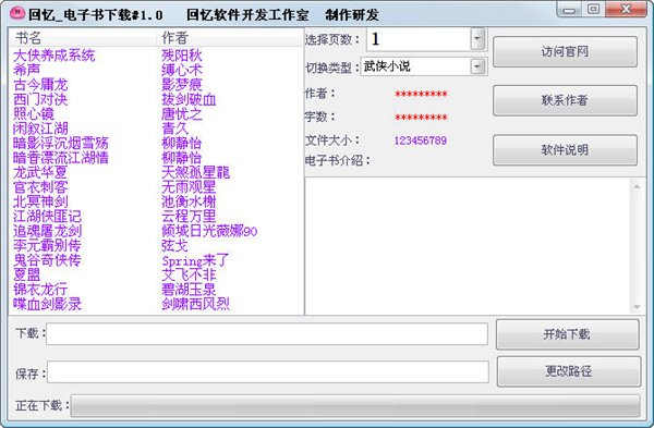 回忆电子书下载工具是一款能让用户进行电子书下载txt免费下载的工具。绿色,完全免费。使用方法:选择好页数,切换好类型,点击选择要下载的小说,然后点击下载即可。