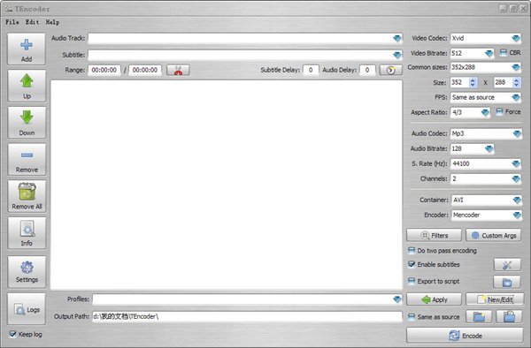 TEncoder是一个多线程的开源免费视频编码器,最大可同步运行8个编码器。软件使用Mencoder和FFMpeg。支持大多数常见视频格式,并能将字幕合并到视频中