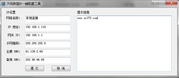 天网联盟ip一键设置方便快捷的设置本地ip地址,软件小巧使用容易。