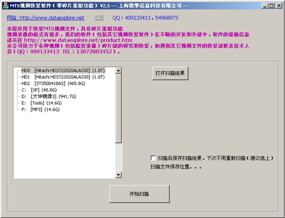 MTS视频数据恢复软件自带碎片重组功能,能够恢复被误删除、误格式化过的索尼高清数码摄像机MTS视频数据,支持FAT32、NTFS等分区格式,有碎片重组功能.