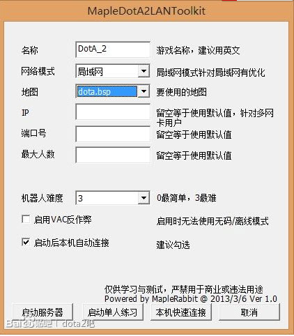 让后打开这个文件夹,运行MapleDotA2LANToolkit.exe即可,如果安装路径错误会报错,请重新安装